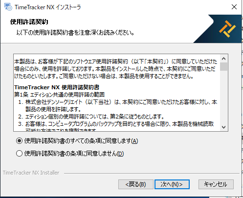 インストール直後にエラーが発生し、TimeTracker NXを再インストールする必要があります。 -