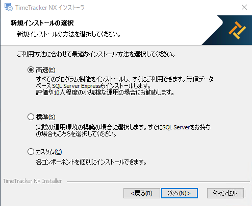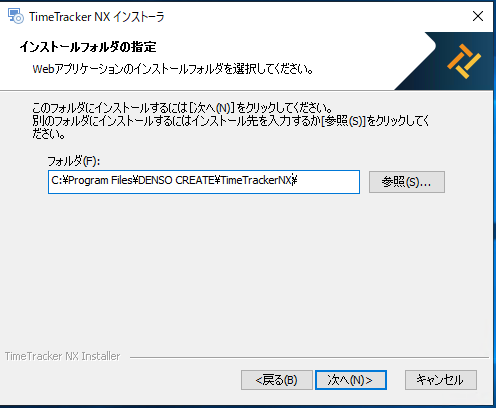 ダウンロードファイルの中にあるインストーラー「TimeTrackerNXInstaller(バージョン番号).exe」を実行して、Webサーバーをインストールします。