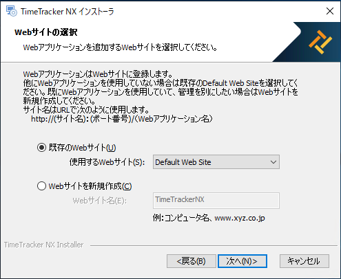 どちらを選択するか?インストールするPCにTimeTracker NX以外のWebサイトやWebアプリケーションが存在しない場合は、