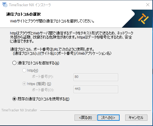 選択してください。TimeTracker NXで使用するプロトコルは「http」「https」だけです。