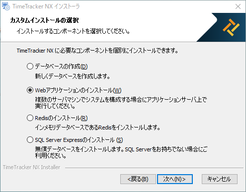 次はインストーラーを使用して、TimeTracker NXをサーバーマシンにインストールします。