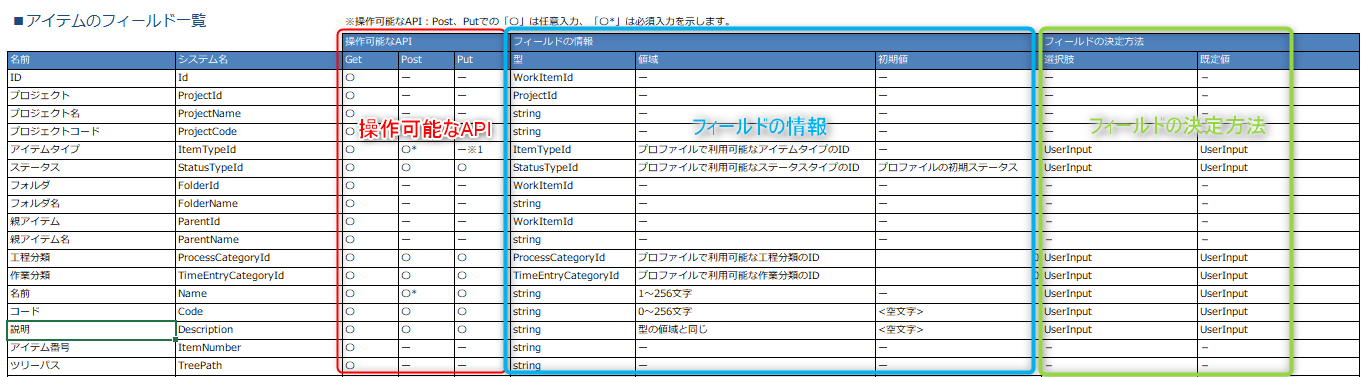 ワークアイテムAPIのフィールドについて